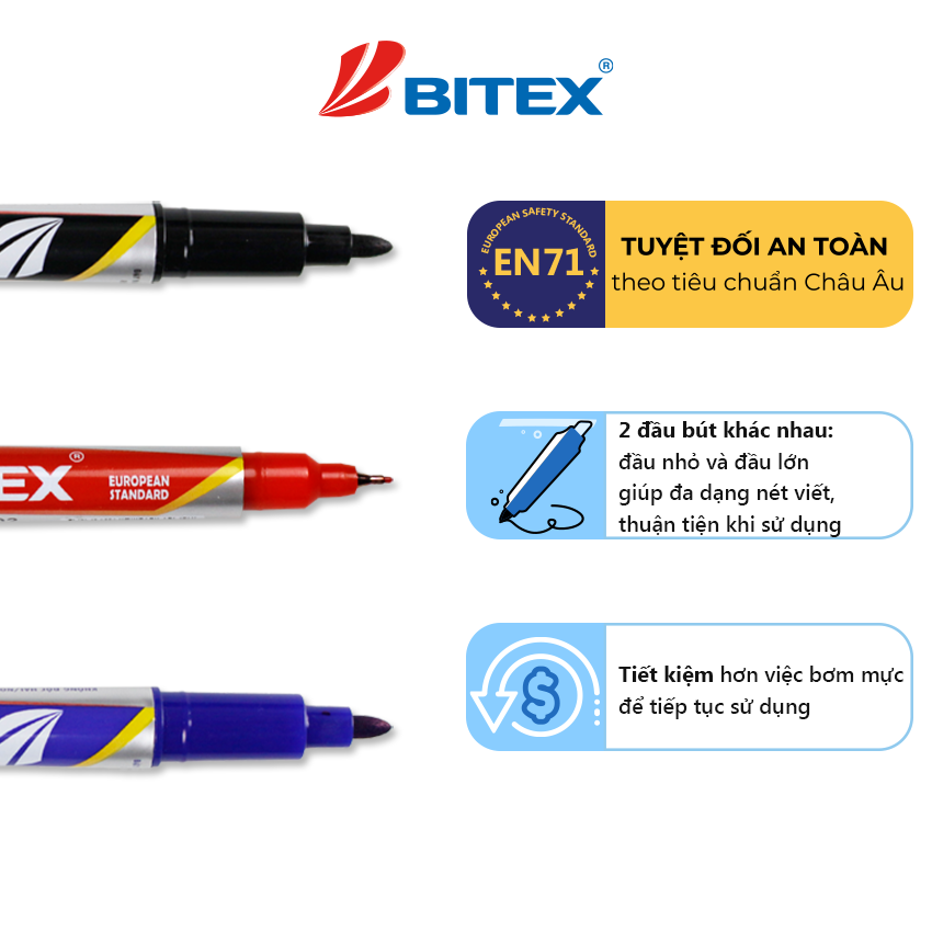 Sản phẩm có kiểu dáng hiện đại gồm 2 đầu bút khác nhau: đầu nhỏ và đầu lớn giúp đa dạng nét viết, thuận tiện khi sử dụng
