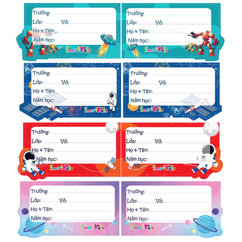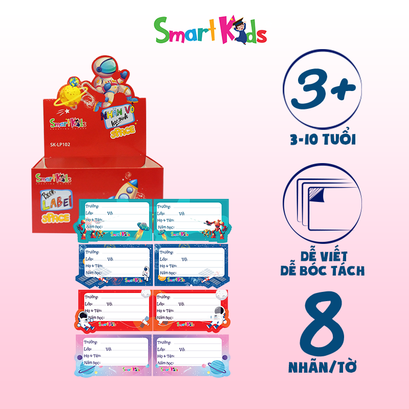 | Đặc điểm | - Nhãn vở Smartkids dành cho học sinh - Phong cách thiết kế ngộ nghĩnh màu sắc tươi sáng - Được sản xuất từ giấy Decal chất lượng cao Dễ viết - Dễ bóc tách |