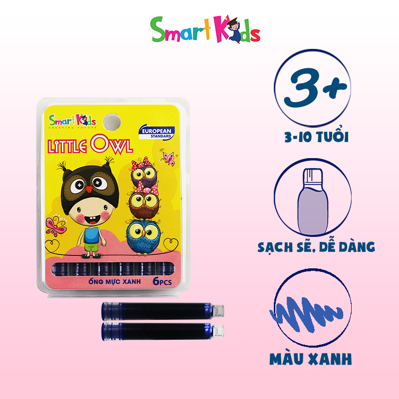 Vỉ 6 ống mực Smartkids được thiết kế tiện dụng dành cho các sản phẩm bút máy Smartkids và kể cả các dòng bút máy khác, chỉ cần cắm ống mực vào bút là có thể sử dụng được ngay. Ống mực thiết kế chắc chắn không lo chảy mực ra ngoài dơ tay